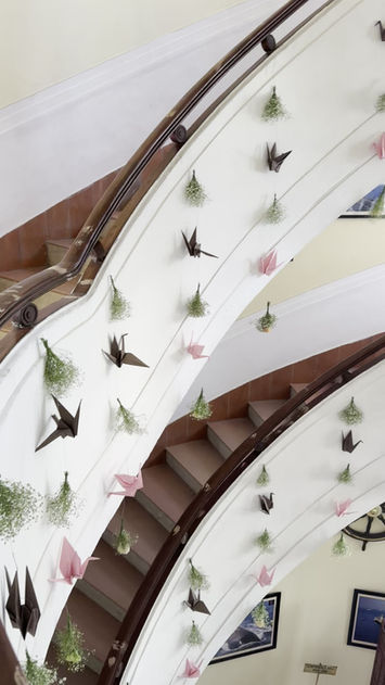 Our team handcrafted hundreds of paper cranes in soothing shades, arranged as a striking hanging installation that transformed the space into an immersive and visually poetic experience. This statement decor became the centerpiece of the celebration, capturing the essence of the occasion and offering guests a stunning, Instagram-worthy backdrop.